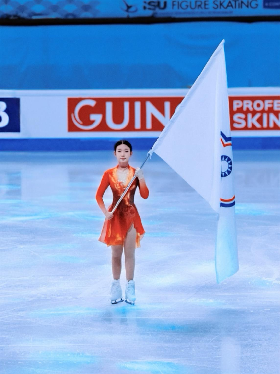 2026年1月22日,国际滑联四大洲花样滑冰锦标赛在北京开幕,焦瑾萱作为旗手亮相开幕式,在主场的冰面上,展现了中国花滑运动员的风采。