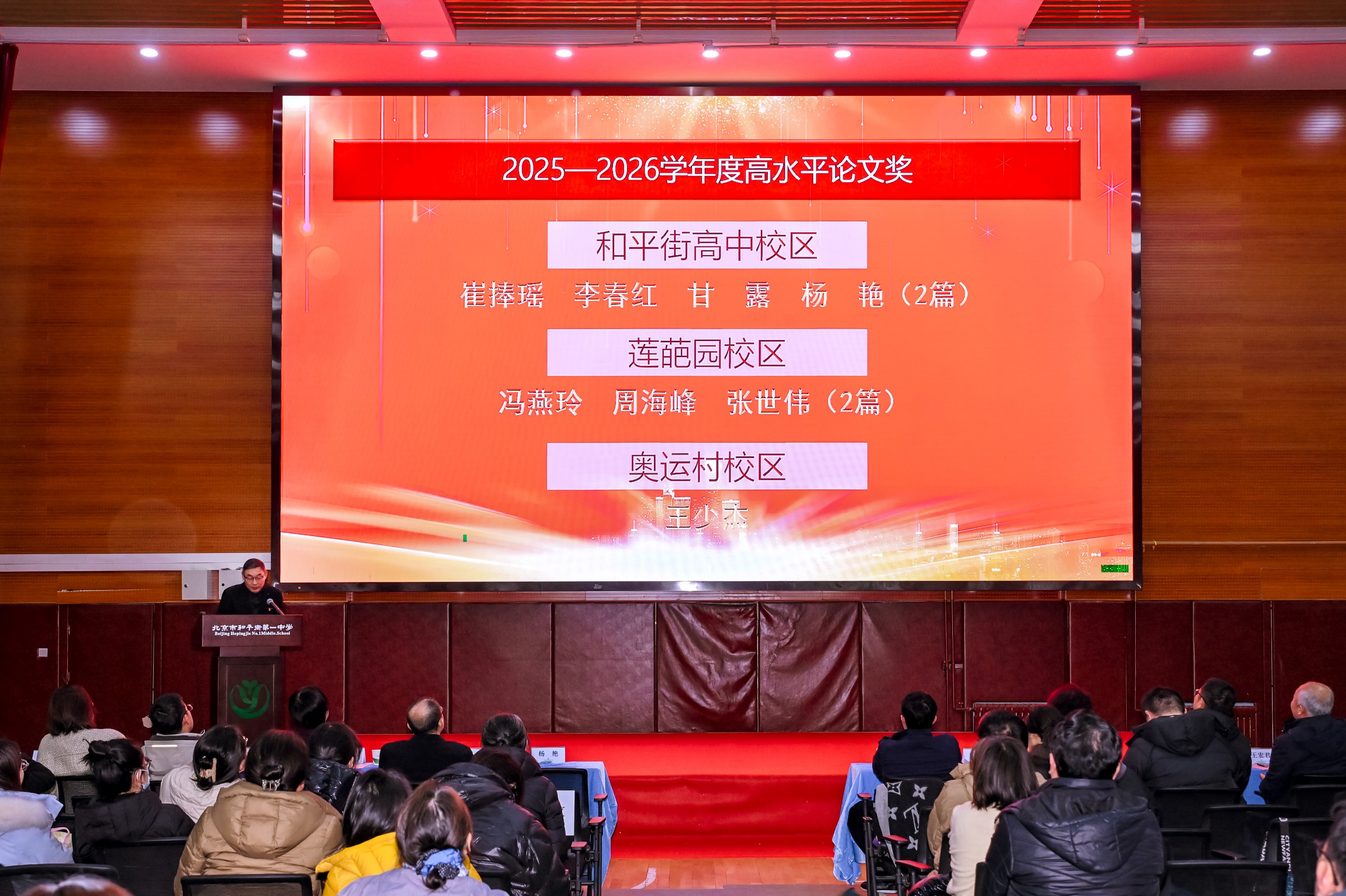 春启新程,笃行致远。为新学期各项工作开好局,凝聚育人共识,明确奋进方向,进一步加强教师队伍建设,弘扬教育家精神,促进人才队伍高质量发展,共绘学校高质量发展新蓝图。2月28日上午,北京市和平街第一中学召开2025-2026学年度第二学期开学全体教职工大会暨第十二届教科研节表彰大会在朝来校区隆重召开。会议由曹成勇副校长主持。