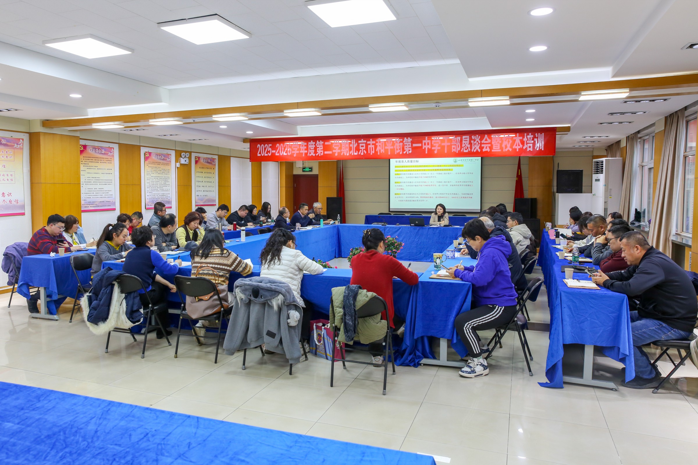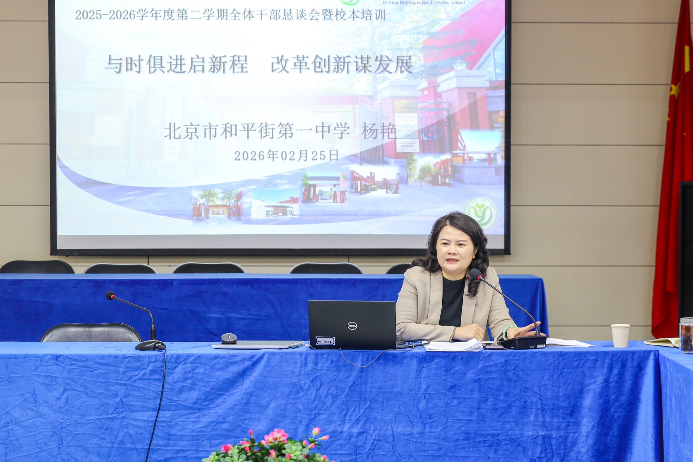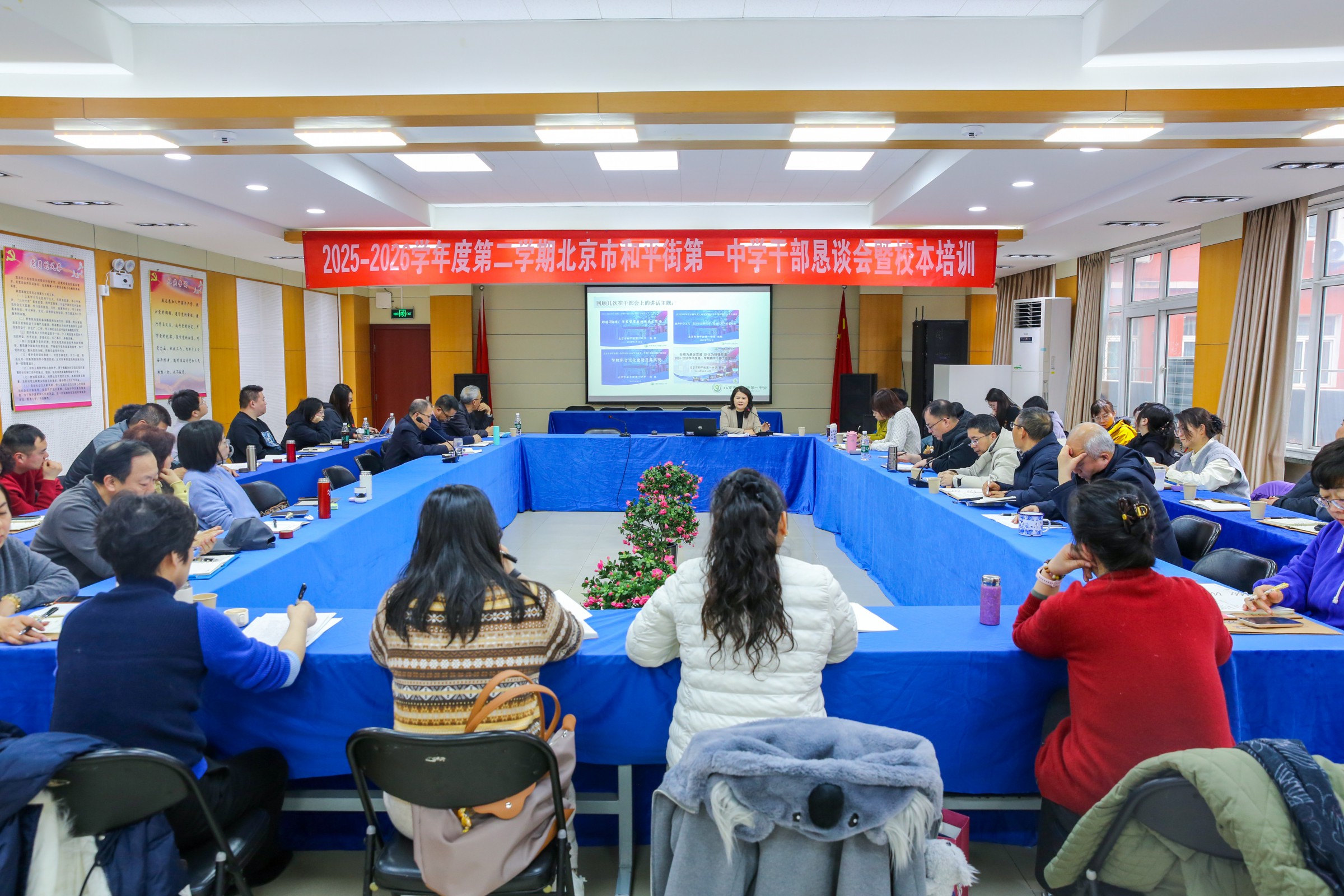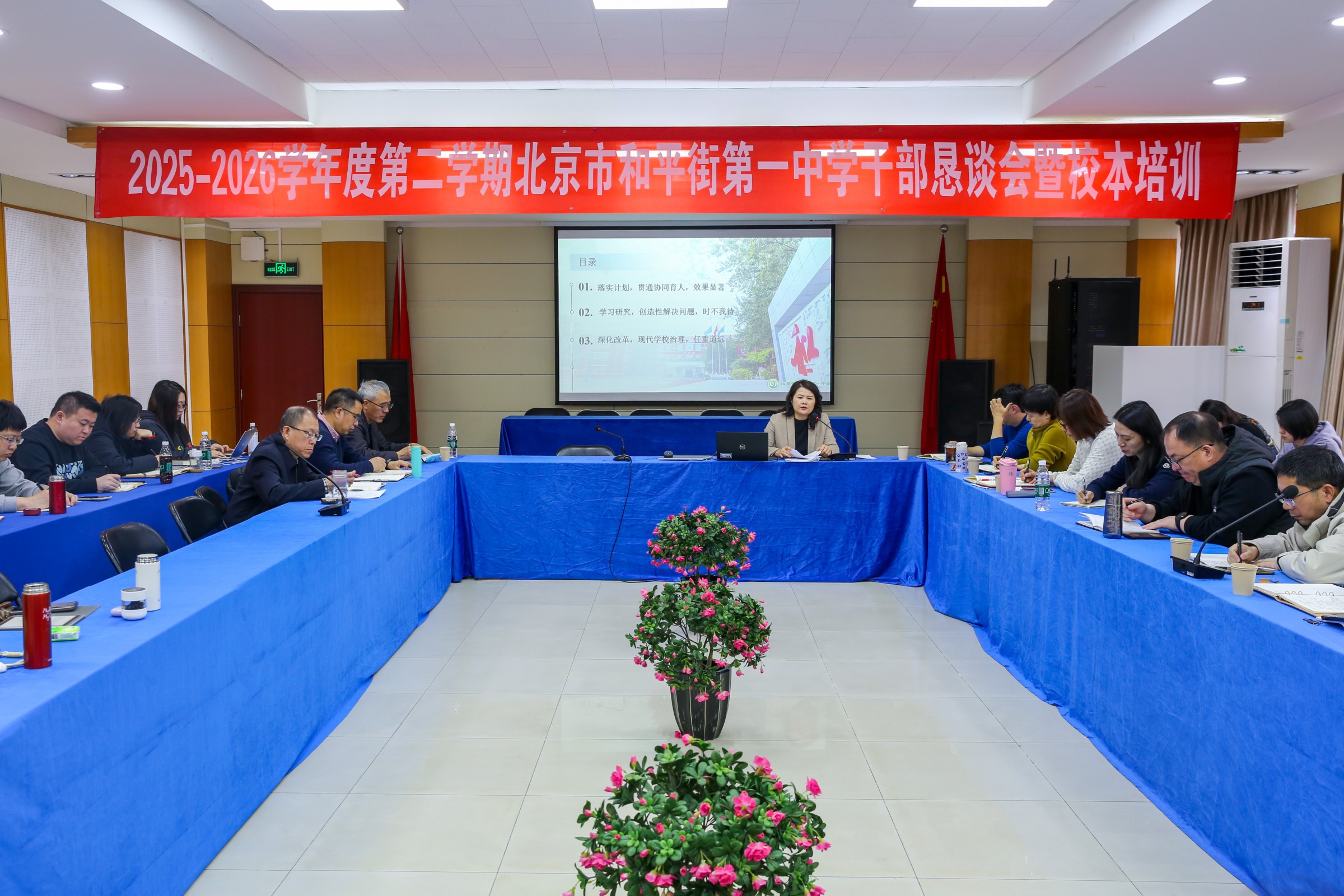 2026年2月25日,北京市和平街第一中学在莲葩园校区举行2025-2026学年度第二学期干部恳谈会暨校本培训。集团全体中层及以上行政干部齐聚一堂,围绕学校“十五五”发展规划编制和年度目标任务,共商学校高质量发展大计。