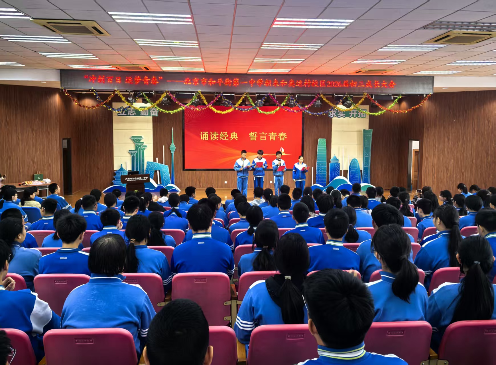 春回大地,中考百日之期悄然来临。为激发毕业班学子冲刺热情,凝聚家校共育合力,近日,北京市和平街第一中学和平街初中校区、朝来和奥运村校区先后举行了2026届初三学生百日立志成长大会。校级领导、全体初三师生齐聚一堂,共同见证这一承载希望与力量的重要时刻。
