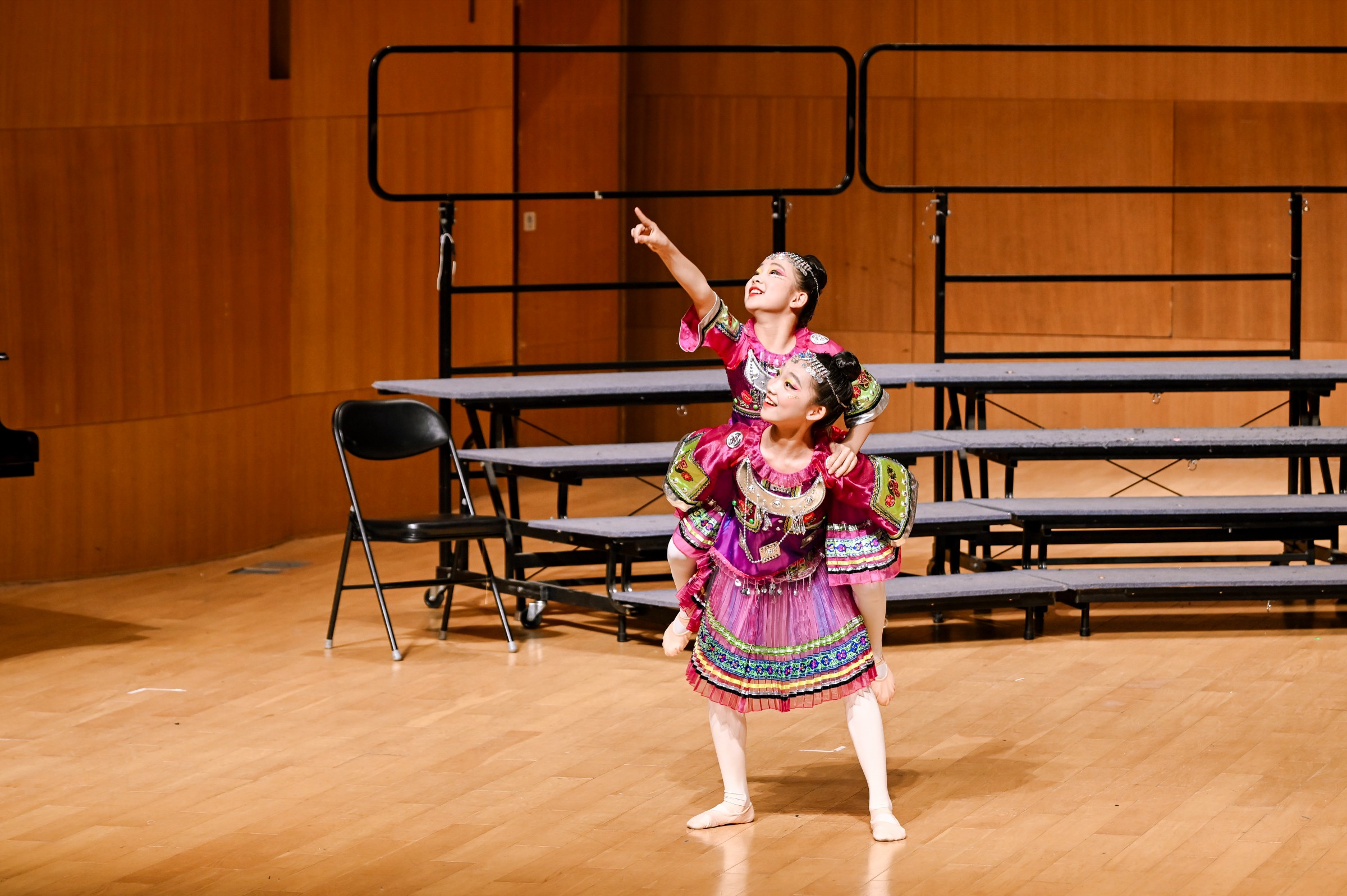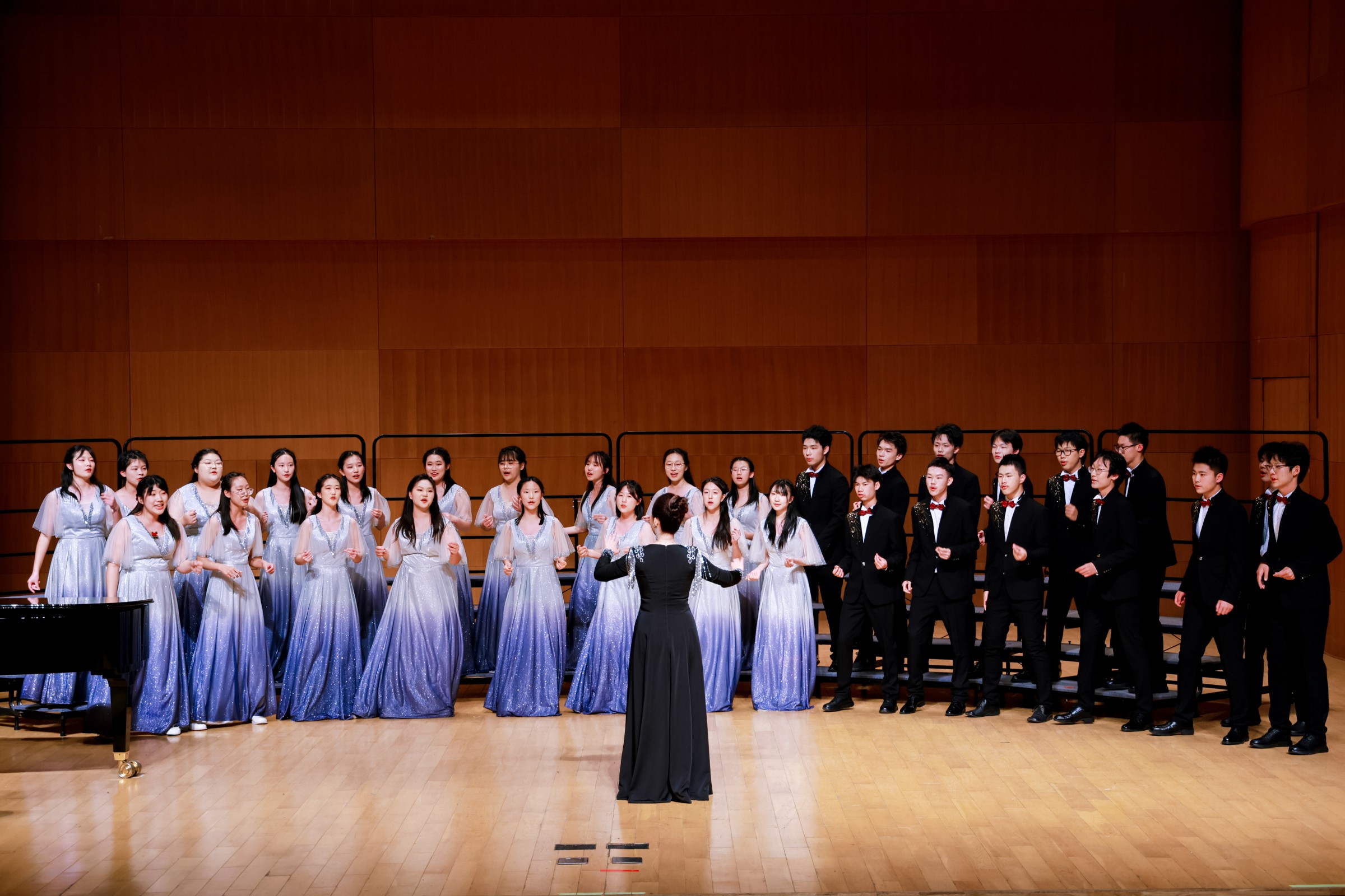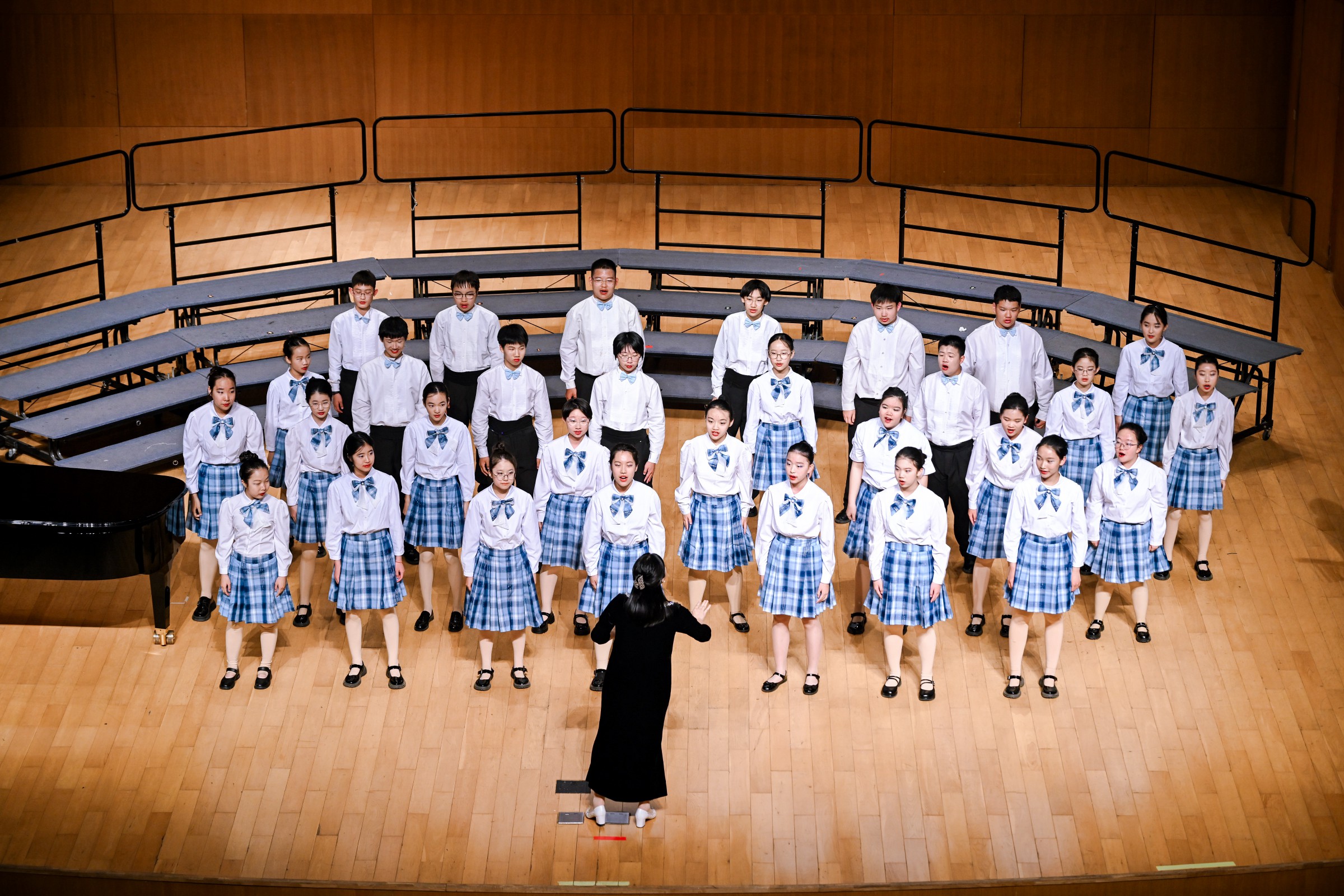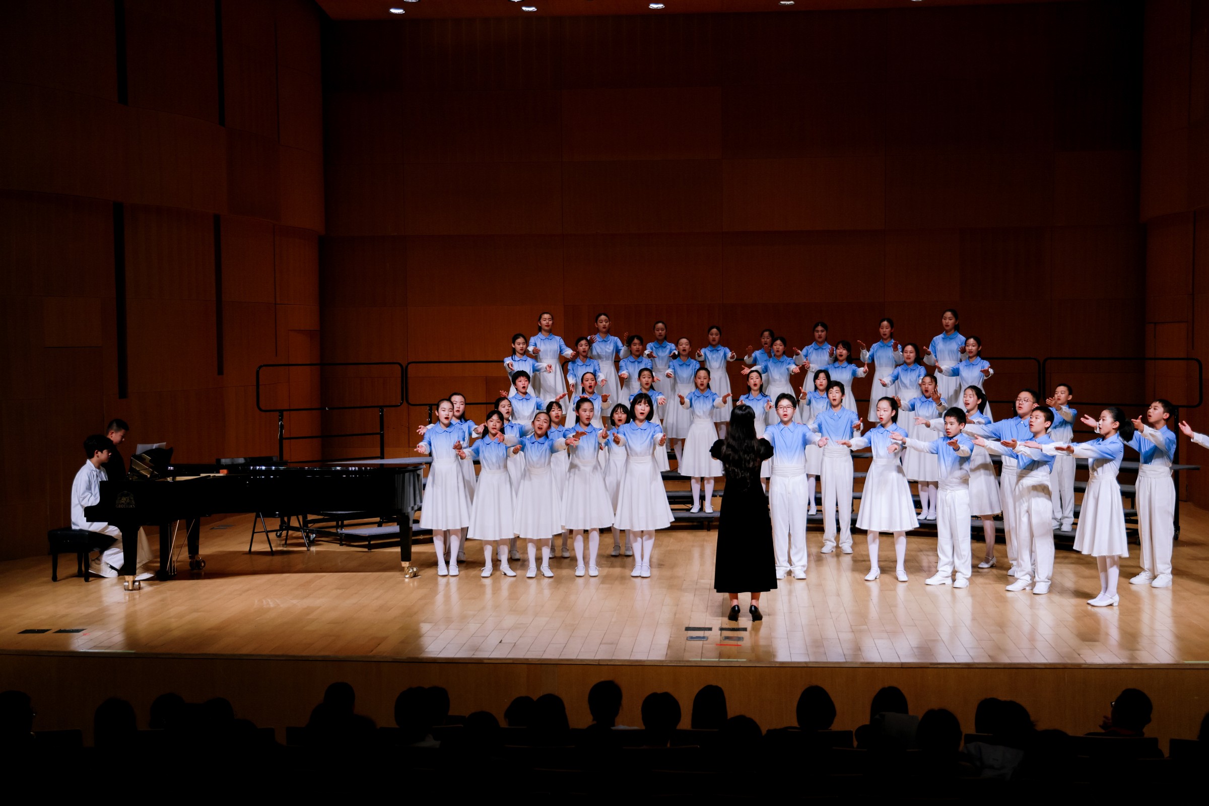 合唱舞蹈篇中,清友园校区青苗合唱团(朝花团)唱响哈尼族民歌《其多列》与英文曲目《We are the voices》,清澈童声纯净治愈;朝来校区和美合唱团带来《梨花又开放》《家乡》,旋律婉转深情;和平街初中校区和乐之声合唱团(朝花团)演绎《Non degu non》《与梦飞翔》,节奏明快、气势昂扬;和平街高中校区紫藤花合唱团带来《世界赠予我的》《越过森林》,歌声温柔又充满力量;清友园校区七彩舞韵舞蹈团带来的舞蹈《我家住在悬崖上》,舞姿灵动优美;集团成员校中国教育科学研究院朝阳实验学校唱响心声合唱团演绎《萱草花》,旋律温柔缱绻;奥运村校区初二 21 班班级合唱带来《快乐叮当》,充满童真童趣;奥运村校区初莺合唱团演唱南非民歌《Siyahamba》,独特的旋律展现出多元文化的融合之美;莲葩园校区阿玛斯合唱团带来《我怎样去爱你》《亚克西》,其中新疆民歌《亚克西》旋律欢快、风情浓郁,生动诠释了各民族文化交融的美好内涵,将现场氛围推向高潮。