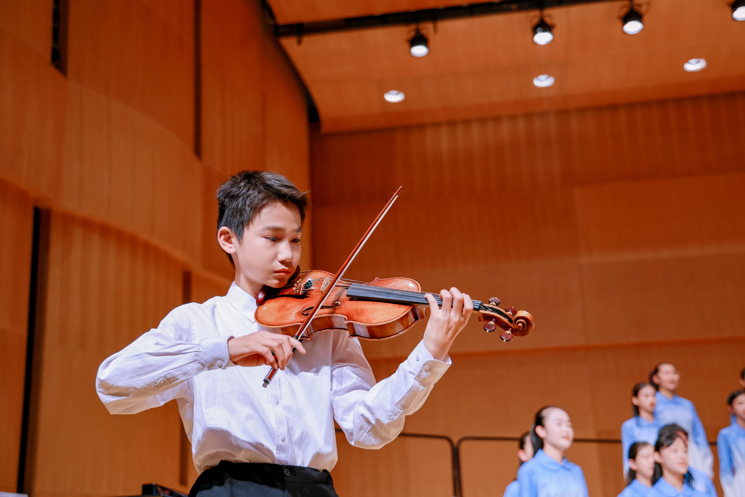 杨艳校长强调,美是育人的底色、是真与善的桥梁。我们希望孩子们在美育浸润的校园中,学会感受美、欣赏美、成为美。以美育人,让每一个孩子学会感知事物的本质、叩问内心的本真,坚守做人的本色;学校尽可能发现每个孩子的不同,进而成就他的与众不同。针对AI时代的教育现状,她讲到,AI可以替代诸多事物,但永远无法替代用爱与音乐浸润的美好心灵,也无法替代孩子在音乐中感受到的情感、信任、合作、热爱与坚守,因此学校将始终坚持五育并举,让真善美的种子在孩子们心中生根发芽,培养有情怀、有品格、有温度、有担当的人,成为自信阳光的时代新人。