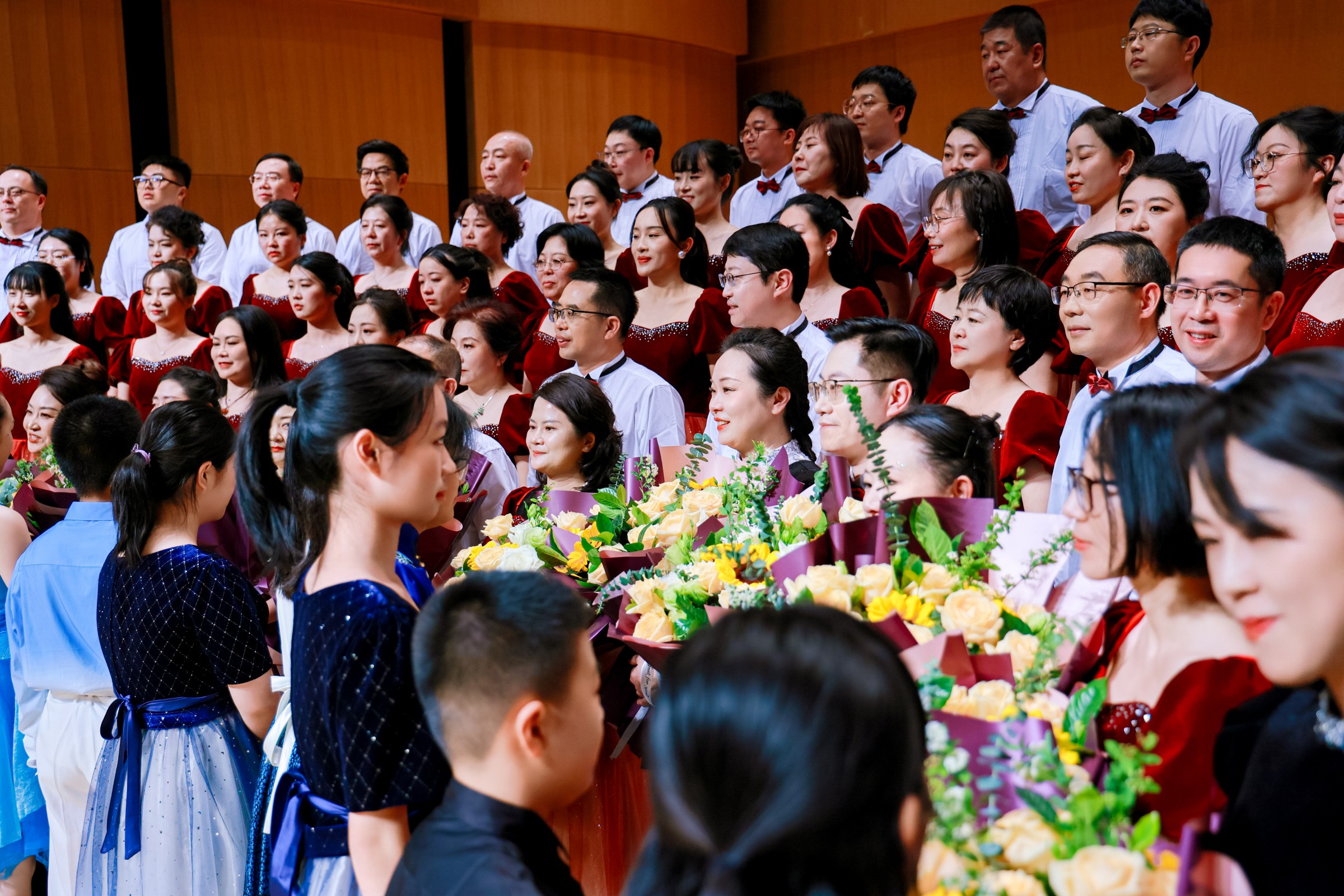 音乐会尾声,由校长亲自组建的和一教育集团“和合教师合唱团”登台,校长、书记带领教师合唱团成员,与现场全体教职工共同唱响校歌《和风乐韵》,全体教职员工因同一首校歌紧紧凝聚,传递教育热忱的同时,也展现了师者和睦同心,立德树人的和雅风范。
