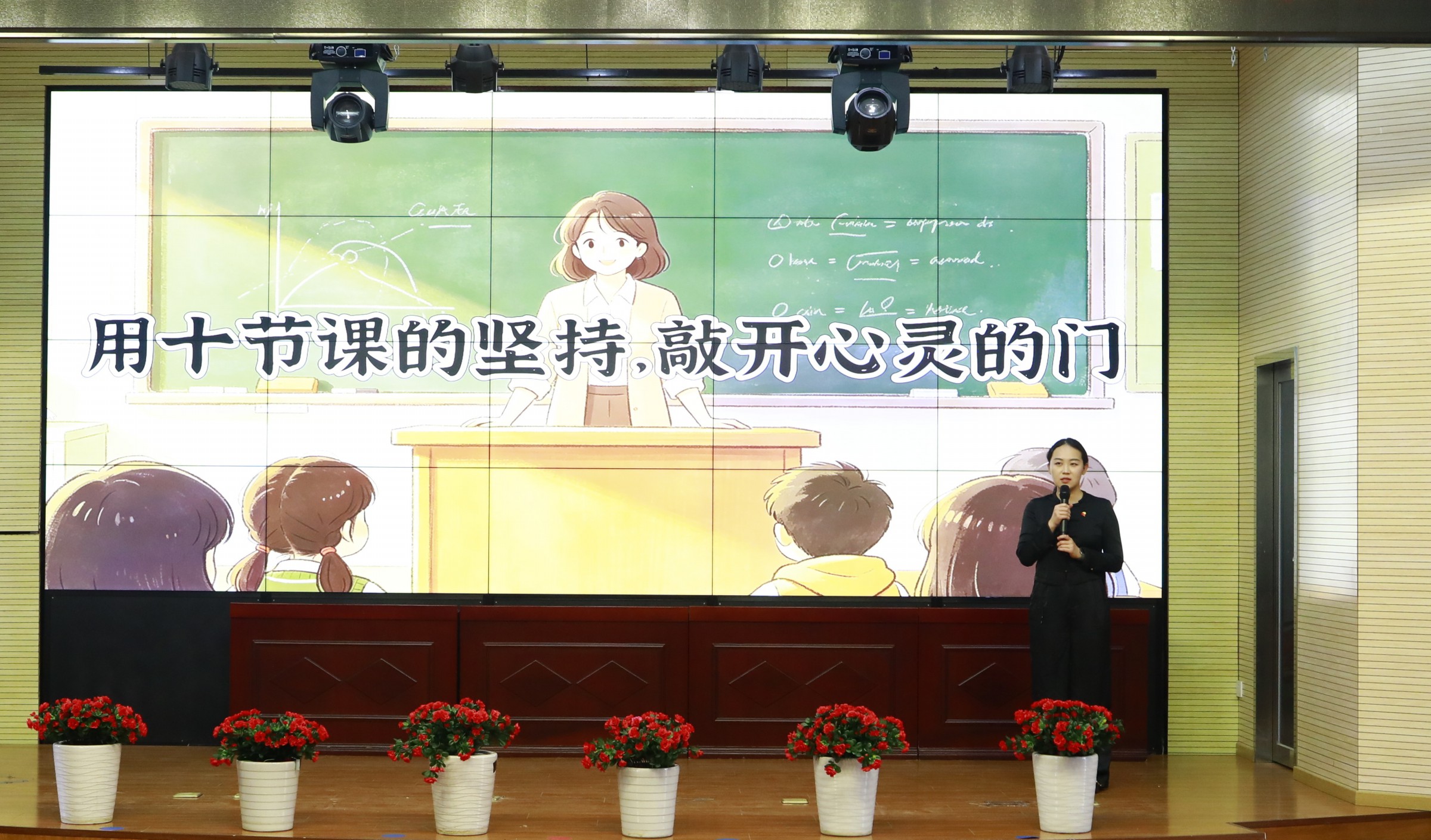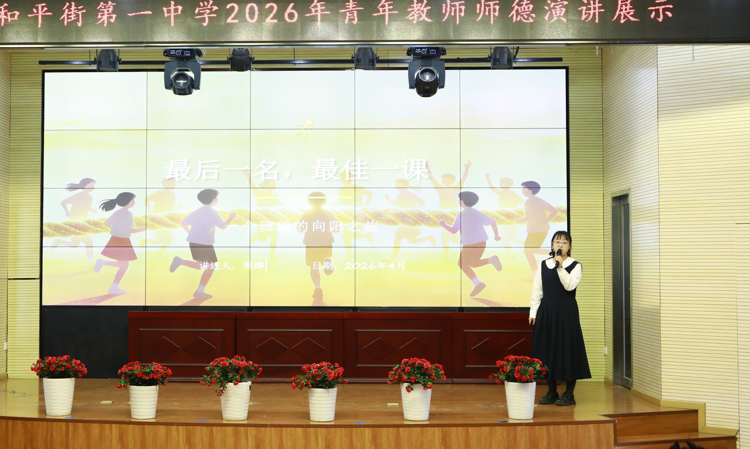 来自六个校区的优秀青年教师依次登台,结合自身教育教学实践,讲述了与学生之间的真实育人故事。高瑞泽老师分享了陪伴新疆内高班学子的暖心历程;秦欣雨老师讲述了以爱化“刺”的温柔坚守;罗梦老师用“十节课约定”敲开心门;刘小艺老师以追动漫走近学生的智慧引发共鸣;张亚娟老师诠释了责任与爱的教育坚守;周烨老师则用一根跳绳摇出了孩子从胆怯到勇敢的蜕变。