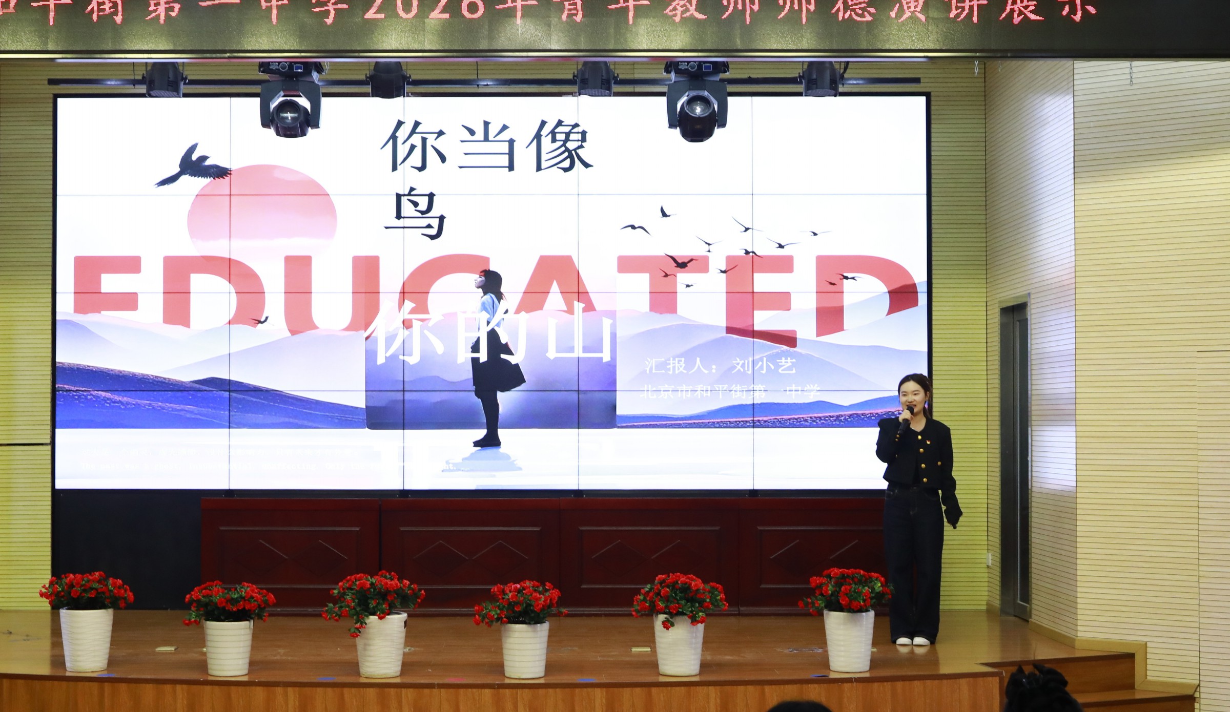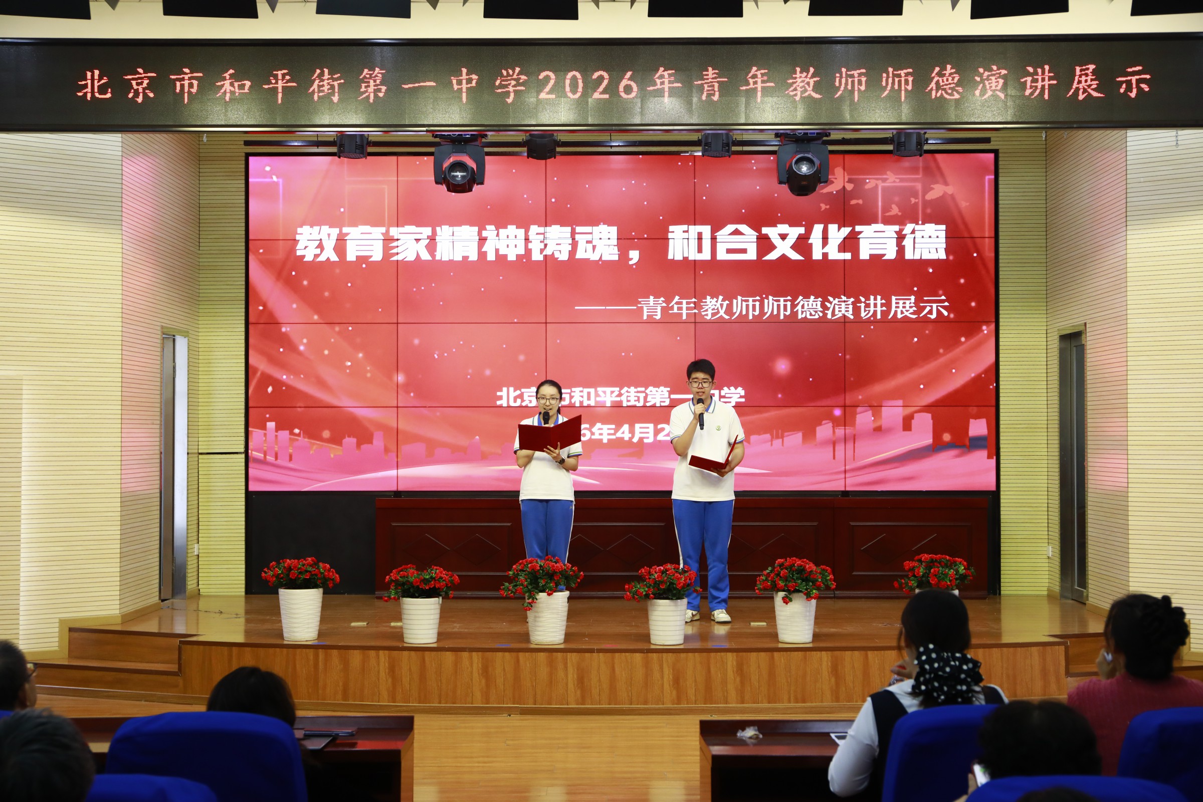 4月21日下午,北京市和平街第一中学举行2026年青年教师师德演讲活动。本次活动以“教育家精神铸魂·和合文化育德”为主题,旨在深入贯彻习近平总书记关于教育家精神的重要论述,展现学校青年教师立德树人、敬业爱生的精神风貌。活动面向全体师生,并进行了实时网络直播。河北省赤城县第二中学赵韩永校长、阳原县第三中学梁智勇书记等嘉宾莅临现场。