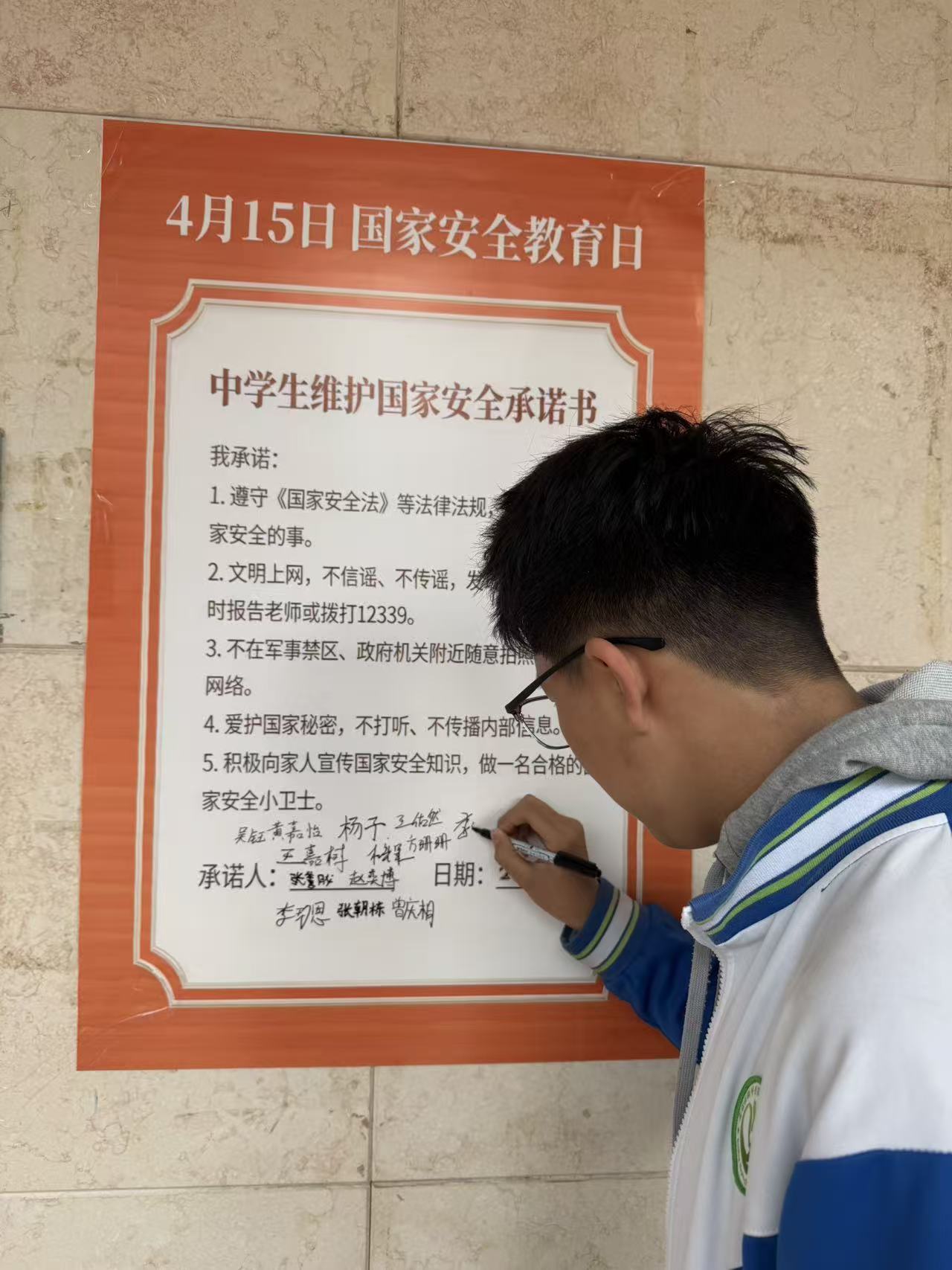 中学部5个校区同步开展“安全至上·自信成长”主题教育周活动。一周内安排不同的活动项目。周一升旗仪式上,法制副校长以《维护国家安全,争当新时代的“国安小卫士”》为题发表国旗下讲话,号召全体师生增强国家安全意识。周二,各班级召开“国家安全 青春挺膺”主题班会,通过案例分析、承诺书宣读等形式,引导学生主动学习国家安全相关法律知识。周三上午,各校区举行四月安全疏散演习,提升师生应急避险能力。周四中午,“国安之声”广播站推出专题节目,普及“12339”国家安全举报电话及相关知识,让国家安全宣传入耳入心。一周内,教学楼大厅同步展出的主题宣传展板,以图文并茂的方式呈现总体国家安全观及网络安全、文化安全等知识,让师生在潜移默化中学习安全知识。